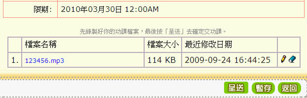 完成後會在所需完成功課看到以下頁面,再按呈送: